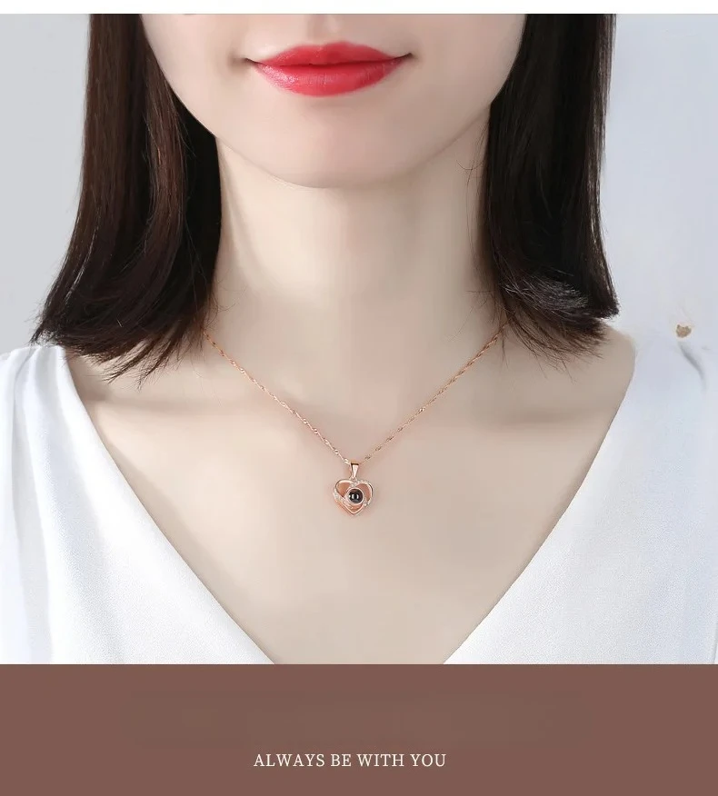 1Pc Love Heart Necklace 100 Languages I Love You Projection Pendant Jewelry for Mom Girlfriend Romantic Valentine'S Gifts