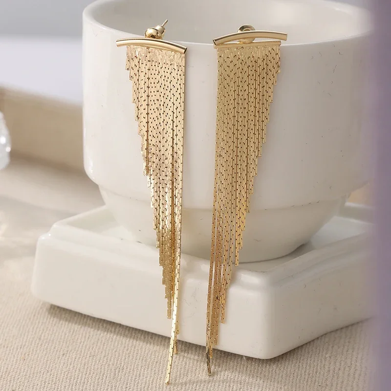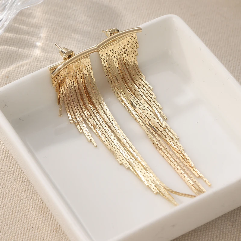 Golden Tassel Stud Earrings for Women – Shiny Elegant Party & Daily Jewelry